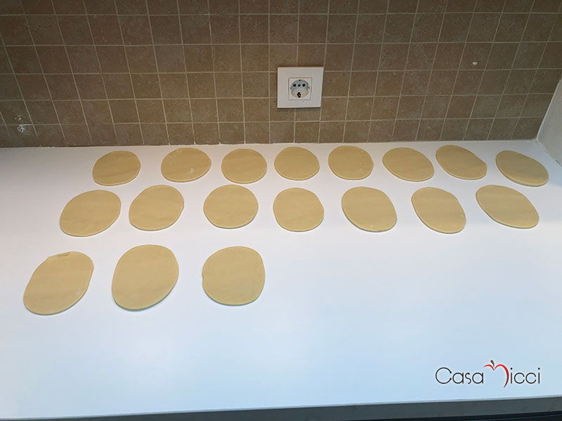 Allunga ogni disco pressando con il matterello solo nella parte centrale.