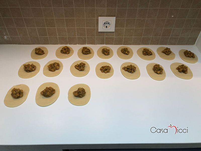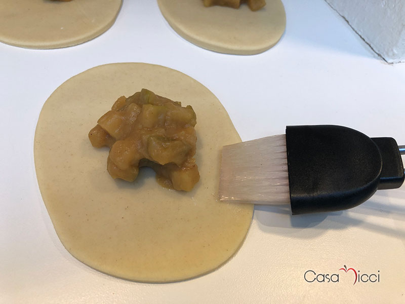 Disponi una cucchiaiata di di farcia alle mele al centro di ogni disco.