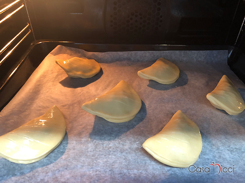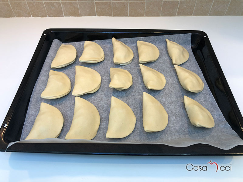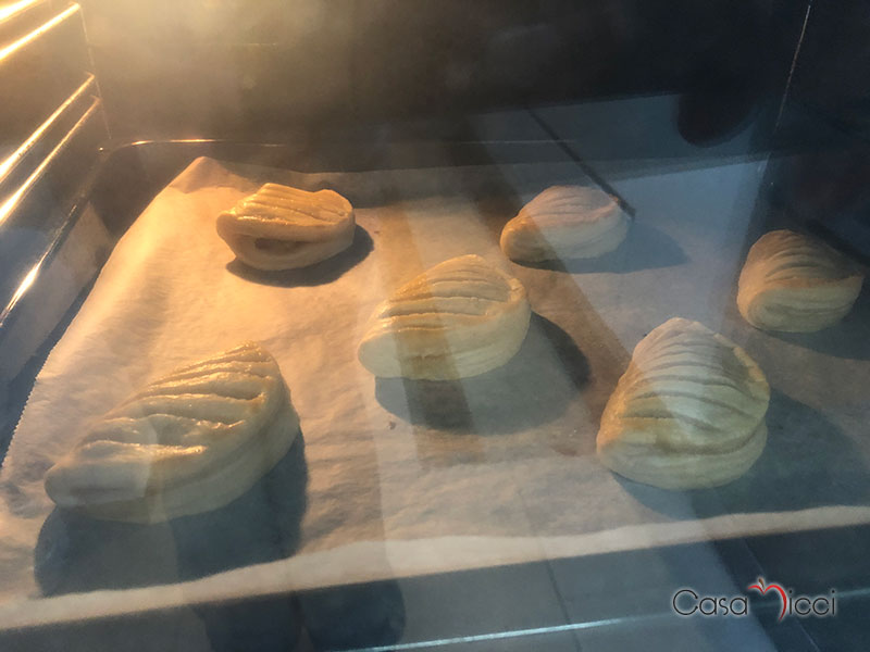 Disponi le sfogliatelle su una placca da forno capovolte.