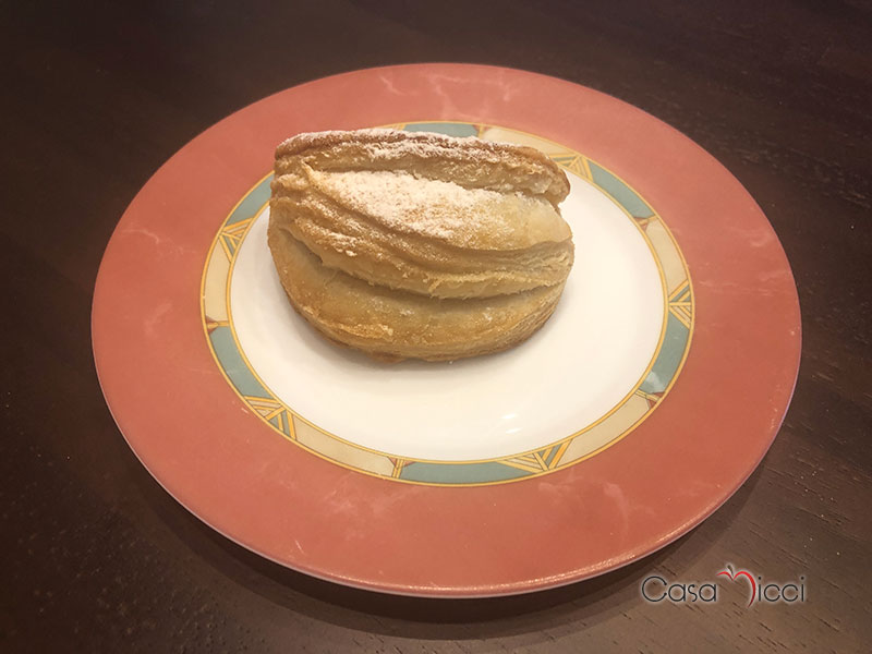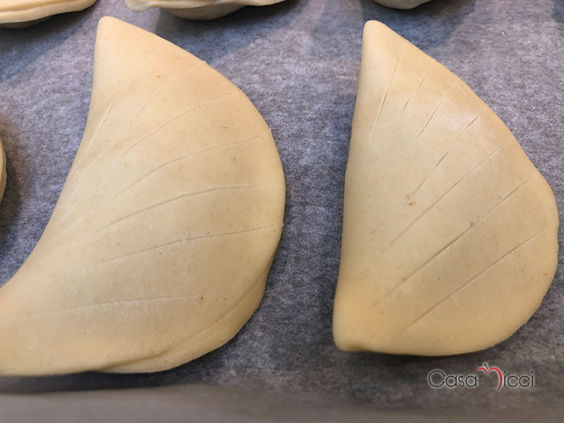 Con la punta di un coltello molto affilato, fai delle leggerissime incisioni sulla superficie della sfogliatella.